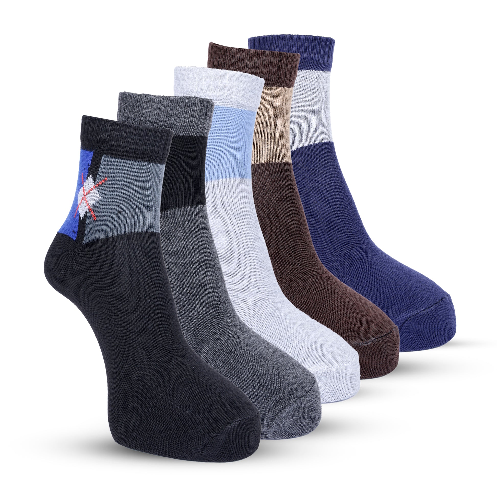 Step up your sock game with this awesome set of five pairs of men's socks, featuring a vibrant mix of colors to match any outfit. Made for comfort and style, these socks are perfect for everyday wear, whether you're at the office or out on the town. Each pair is designed to keep your feet cozy while adding a pop of personality to your wardrobe.