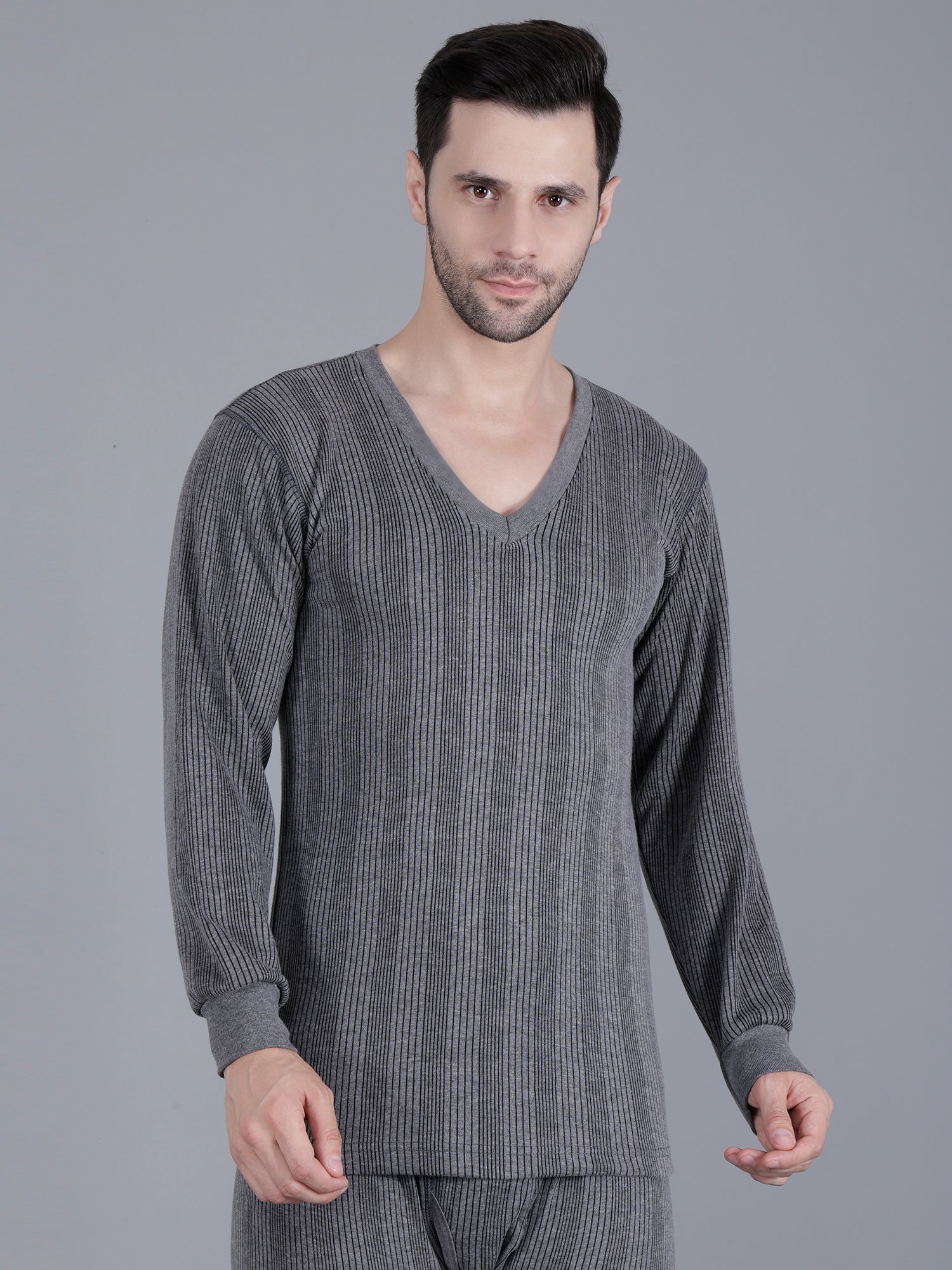 Stay warm and comfortable this winter with our Men's Grey Cotton Body Warmer. This long-sleeve thermal top with a V-neckline is expertly crafted from soft, breathable cotton, this body warmer provides gentle insulation without compromising on comfort.