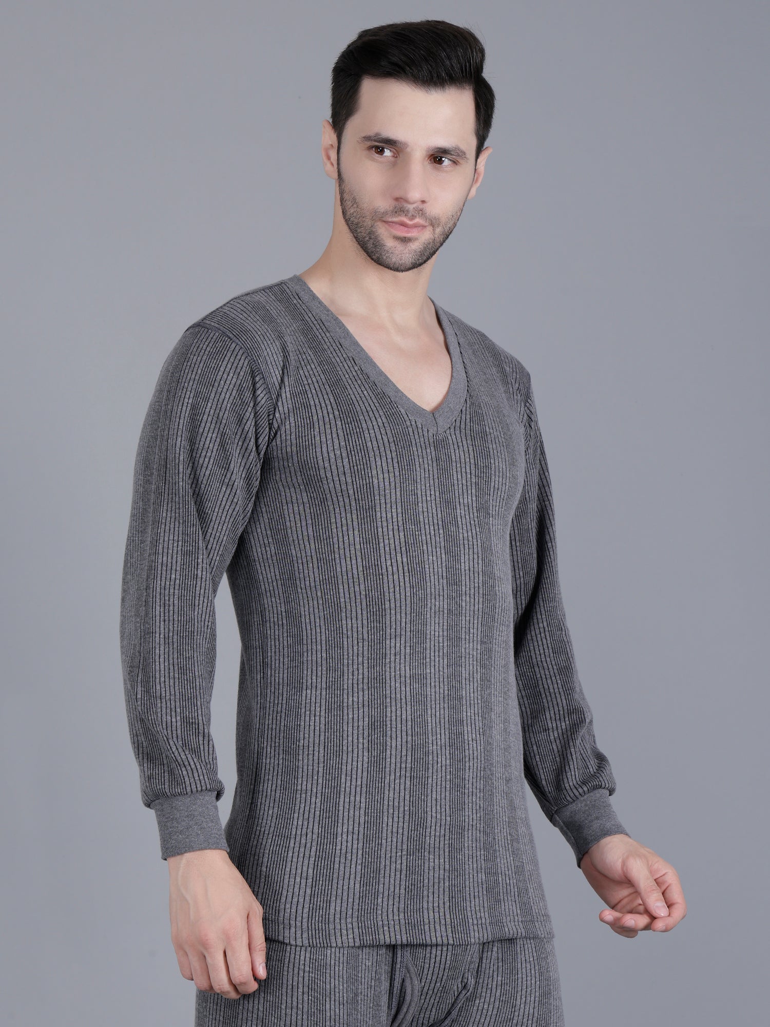 The elegant grey shade and subtle vertical ribbed pattern offer a stylish yet understated look, perfect for layering under jackets or wearing alone indoors. Designed to fit perfectly, it ensures ease of movement while keeping you cozy. Ideal for chilly mornings and cool evenings, this body warmer is a must-have wardrobe essential for every man seeking warmth, style, and comfort in one versatile piece.
