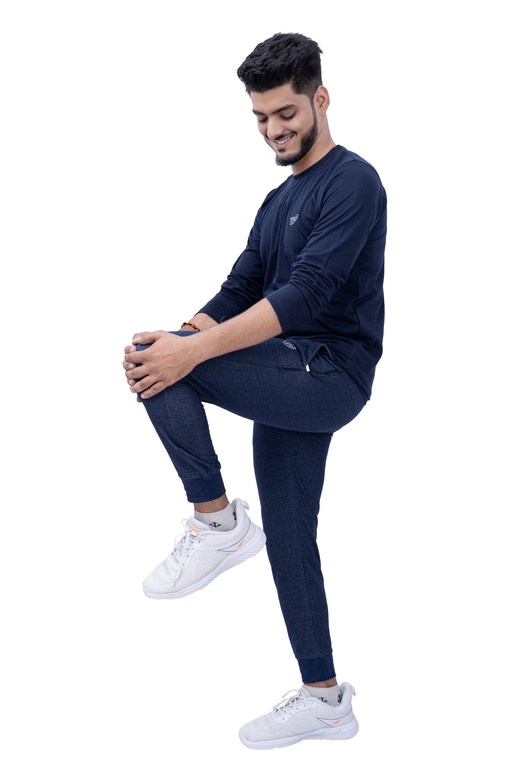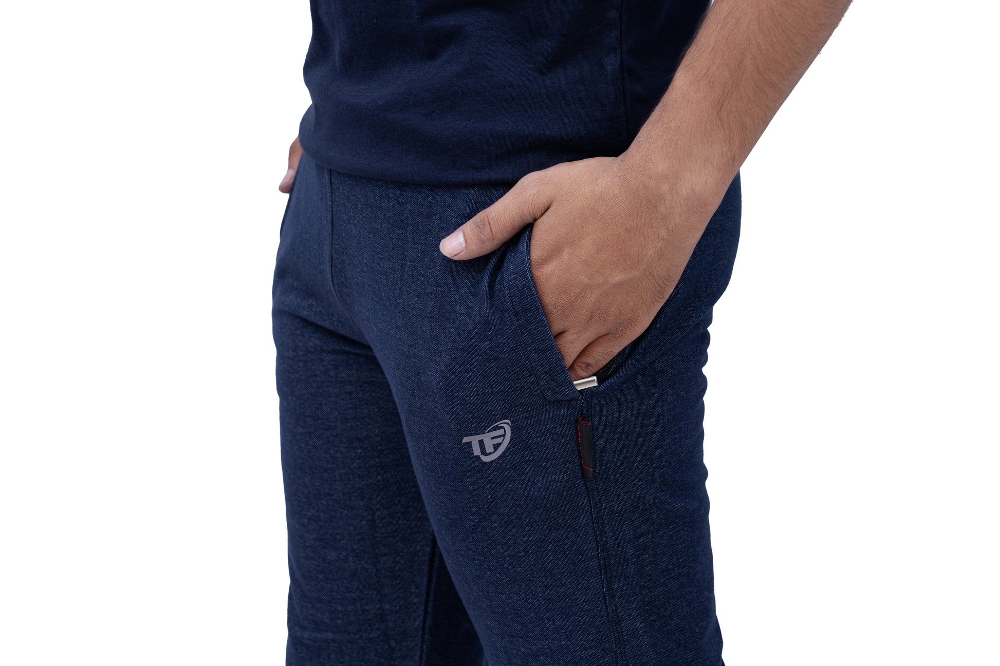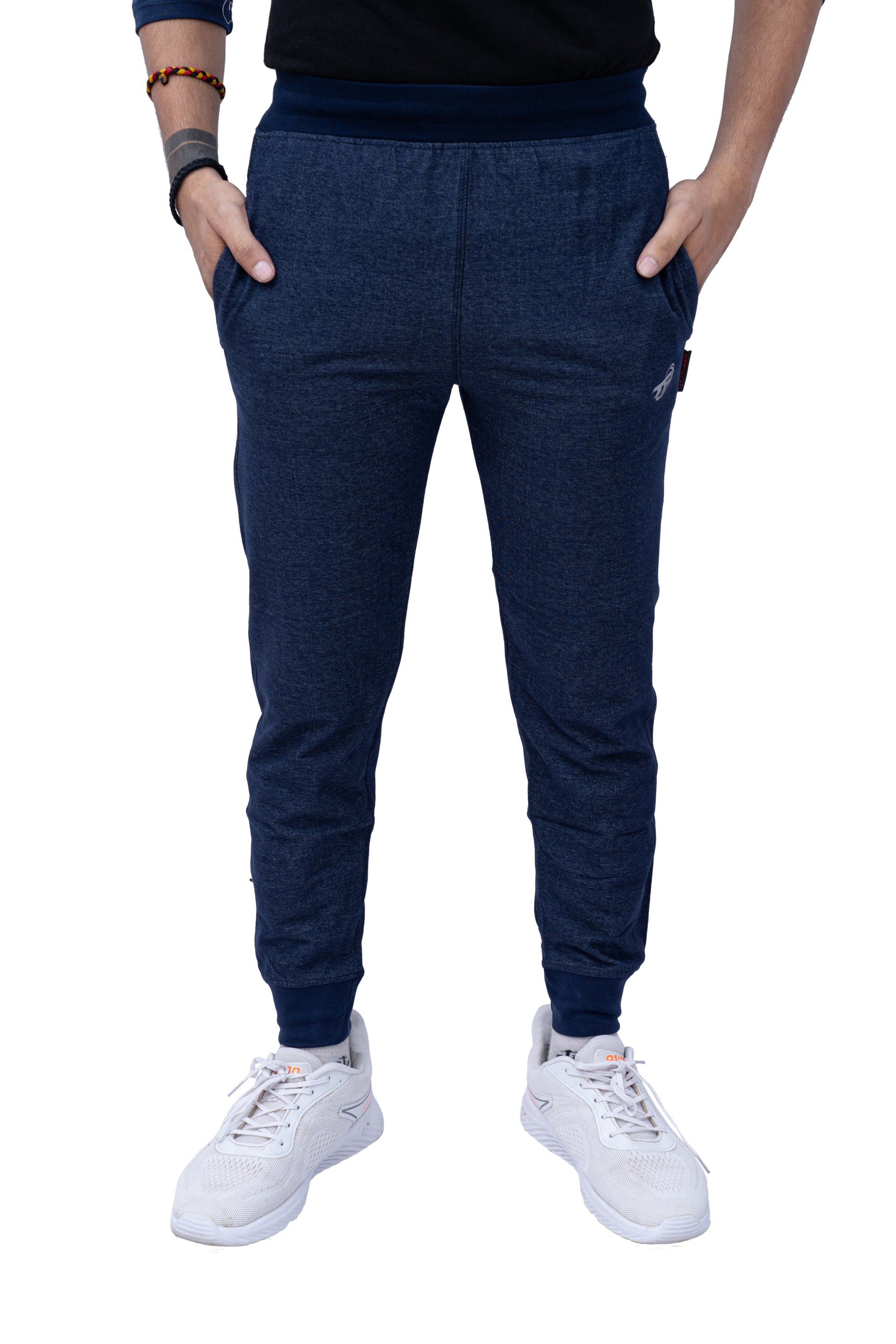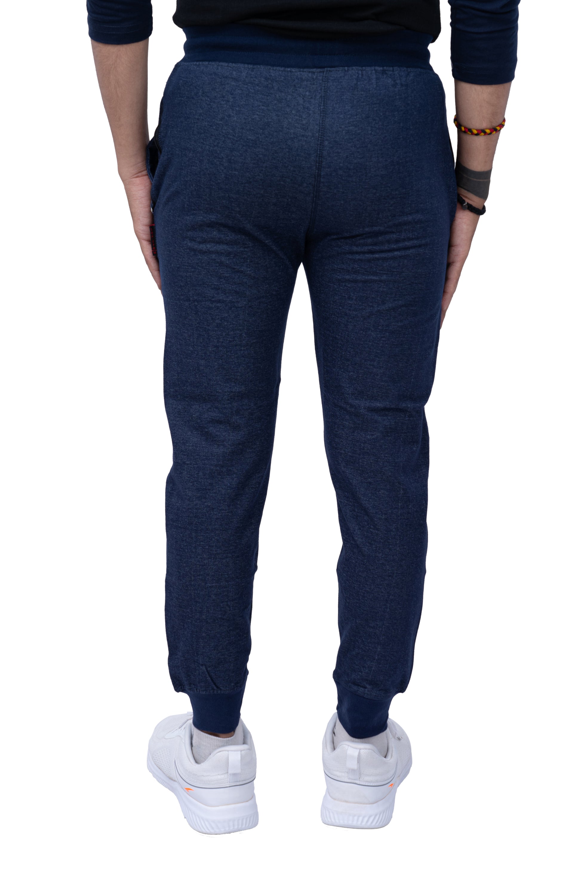 Stay comfortable and on-trend with these stylish navy blue denim joggers. Made from lightweight, breathable denim, they offer the perfect blend of ease and sophistication. The slim-fit is enhanced with an elastic waist and drawstring, ensuring all-day comfort. Functional side pockets, including a zippered compartment, add a touch of practicality, while the cuffed ankles give them a sleek, modern look.